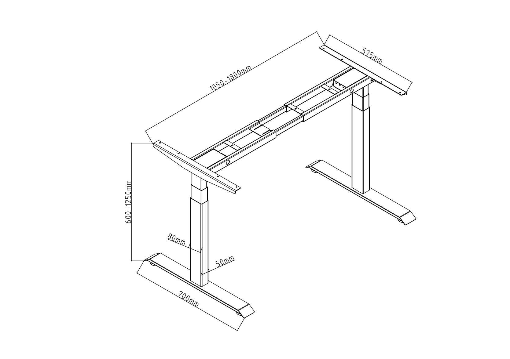 - Einfache Anpassung der Breite: Das Tischgestell ist von 1050 mm bis 1800 mm ausziehbar, wodurch es sich flexibel an unterschiedliche Tischplattengrößen anpassen lässt.