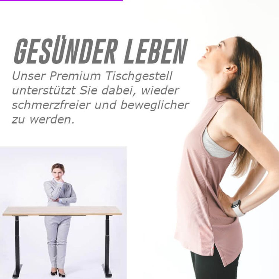 - Ergonomisches Arbeiten: Wechseln Sie einfach zwischen Sitzen und Stehen und steigern Sie so Ihr Wohlbefinden.