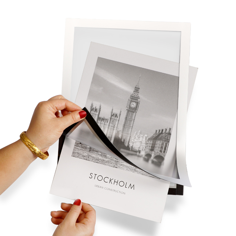 - Schneller Dokumentenwechsel: Der magnetische Verschluss ermöglicht es Ihnen, Dokumente in Sekundenschnelle auszutauschen, ohne den Rahmen von der Wand nehmen zu müssen.